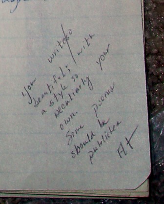 If I’d posted all of them, you might have formed a completely different opinion. Heh-Heh. I just posted the best ones of the bunch. There are pages and pages of drivel that are very embarrassing. But, it is pretty amazing that I’ve hung on to this thing all these years. This is about all I have other than an article I wrote for my college newspaper that I never sent in and some weirdo story I started and never finished…sigh…
