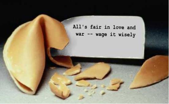 One of the options you have when “designing” your paperback novel is the cover art. You can either use their stock pictures, which aren’t too bad, or you can design your own. In my head I have already visualized the cover for All’s Fair. It would be an opened fortune cookie with the novel’s title / tagline printed on the fortune. The cookie and its contents are lying on a wedding invitation. I know I can make this even with my rather limited skills in photo editing. My first quest was to find the photos from the web. The fortune cookie was easy. I found one of those online customized sign generators and made this: